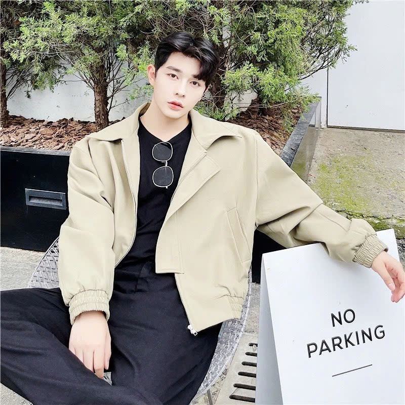 Áo Khoác Vải Gió Form Crop Có Độn Vai Phong Cách Hàn Quốc