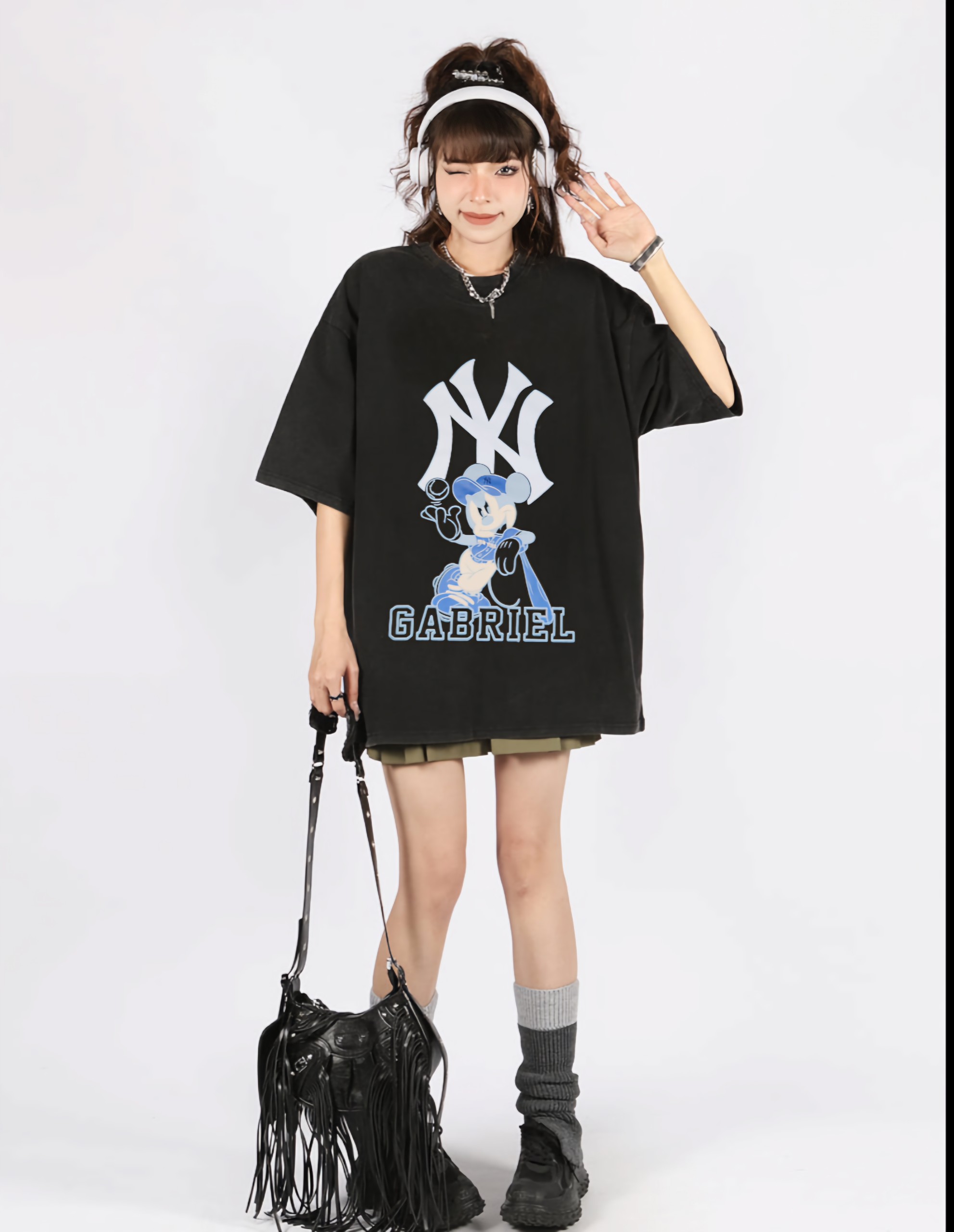 Áo Thun NY Mickey Bóng Chày Unisex Form rộng 100% Cotton Co Giãn Không Phai, Áo Thun Unisex Nam Nữ