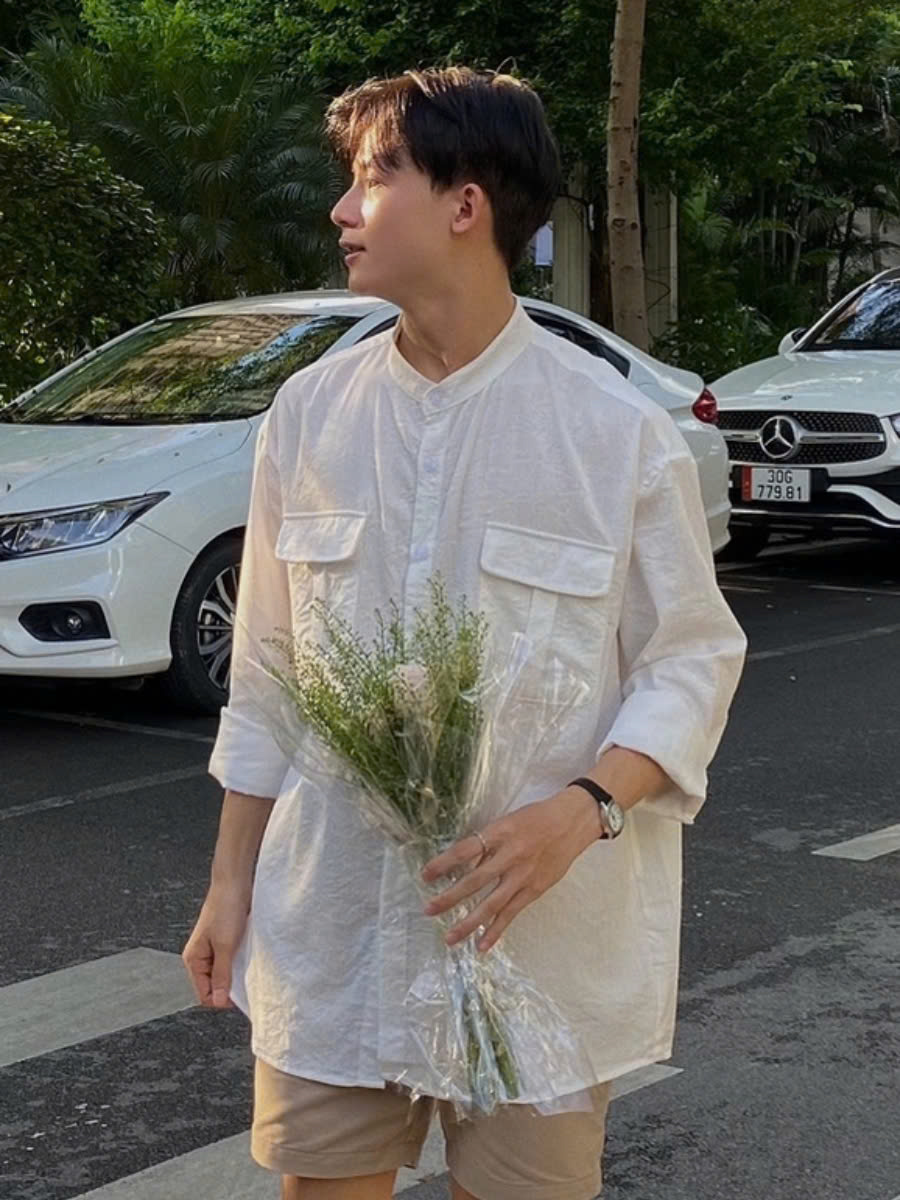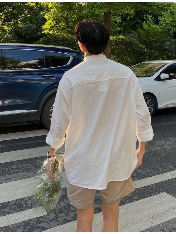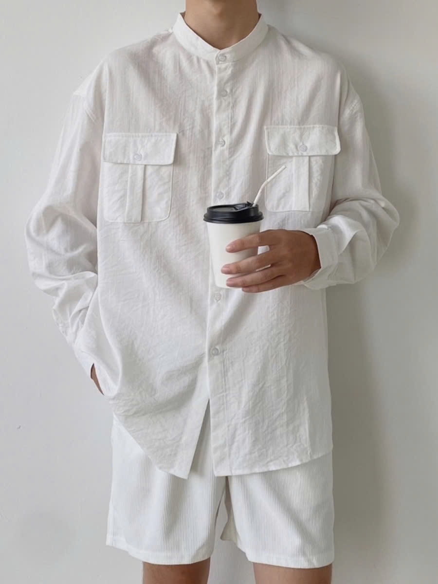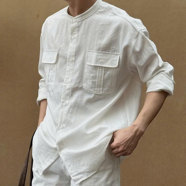 Áo Sơ Mi Nam Đũi Cổ Trụ 2 Túi Có Cúc Áo Chất Đũi Mềm Mại Dày Dặn Đẹp