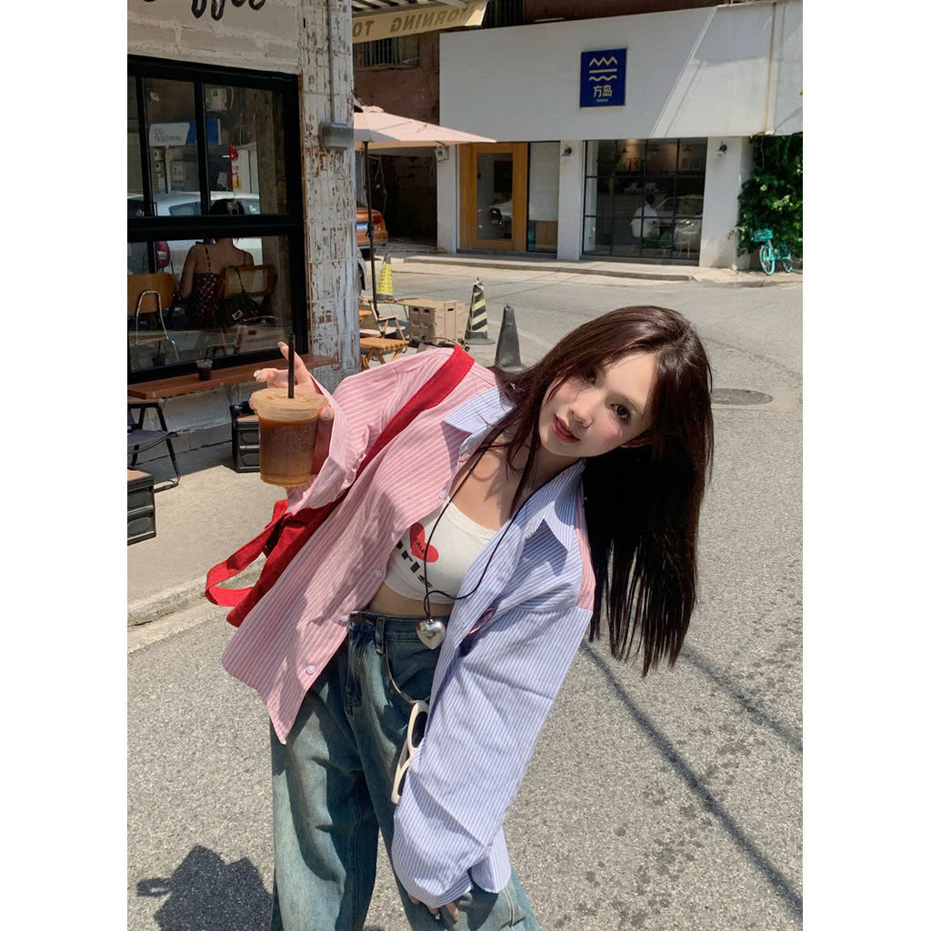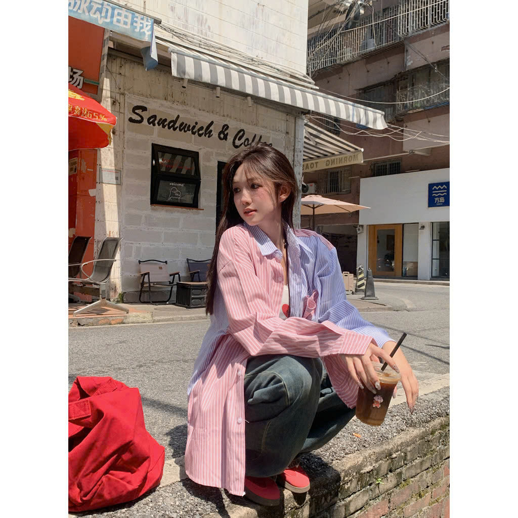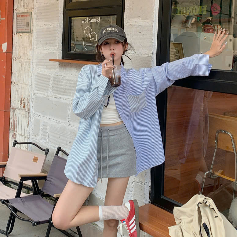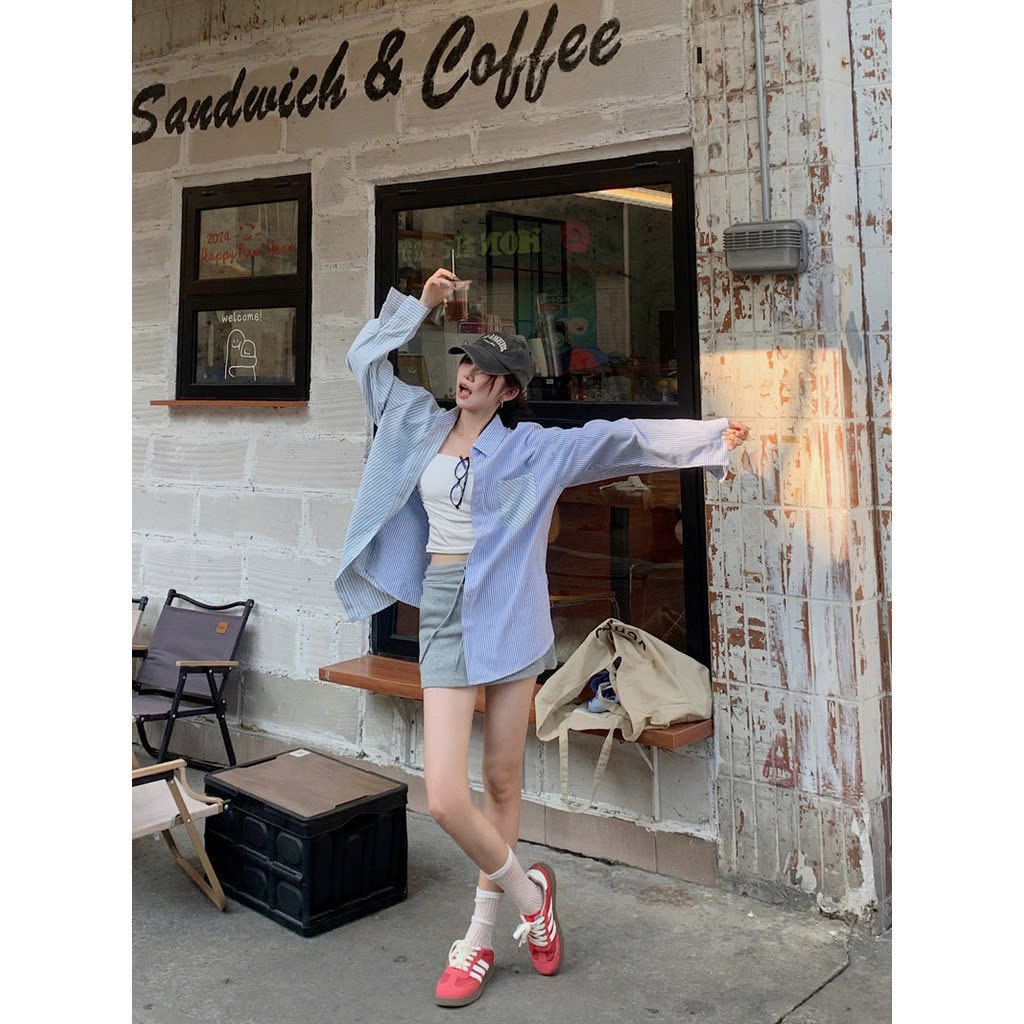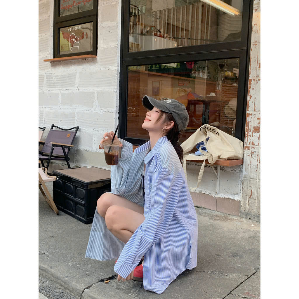 Áo Sơ Mi Tay Dài Mùa Thu Kẻ Sọc Áo Rời Đơn Giản Phong Cách Mới