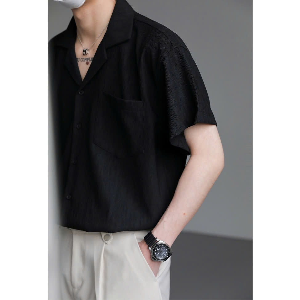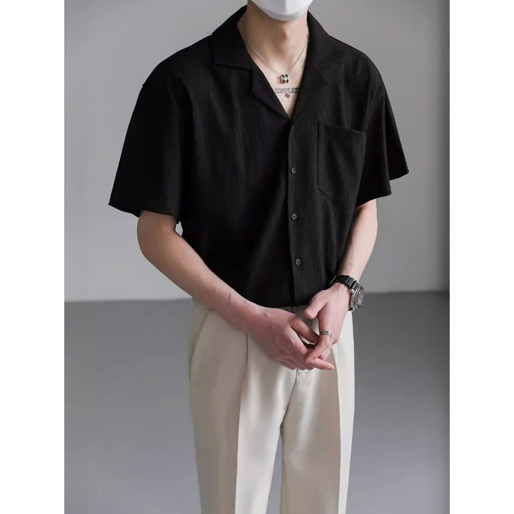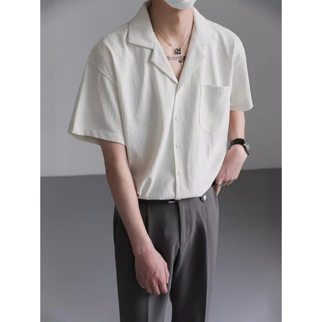 Áo Sơ Mi Vải Đũi Thoáng Mát Ngắn Tay Cổ Bẻ Mùa Hè