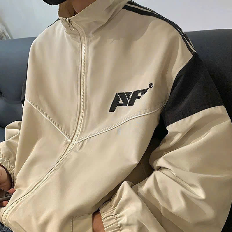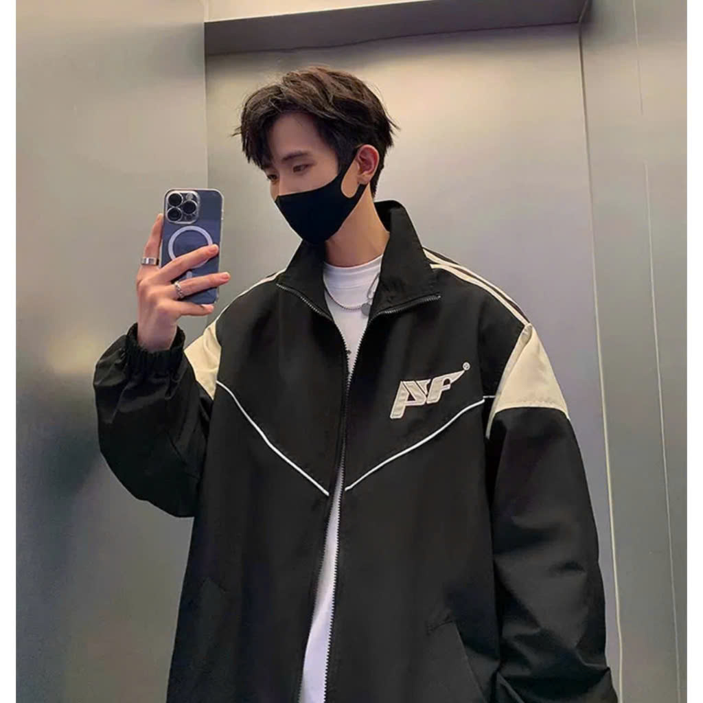 Áo khoác dù Bigsize cổ trụ Nam Nữ 2 lớp logo thêu AF có dây rút