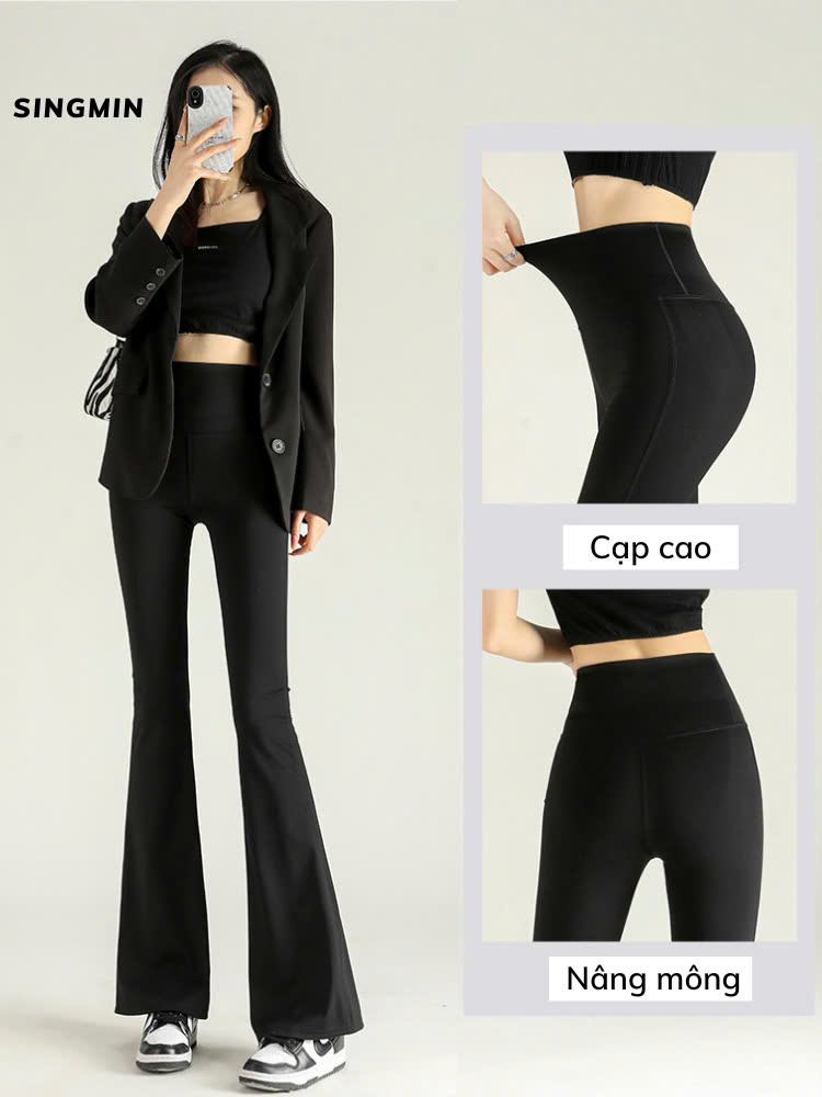 Quần ống loe cạp cao hách dáng nâng mông che khuyết điểm