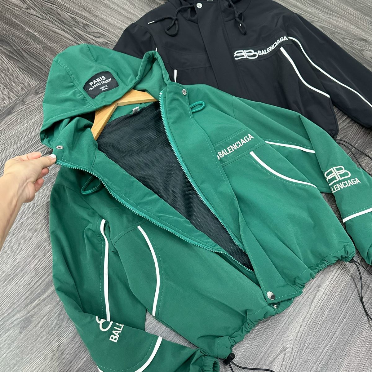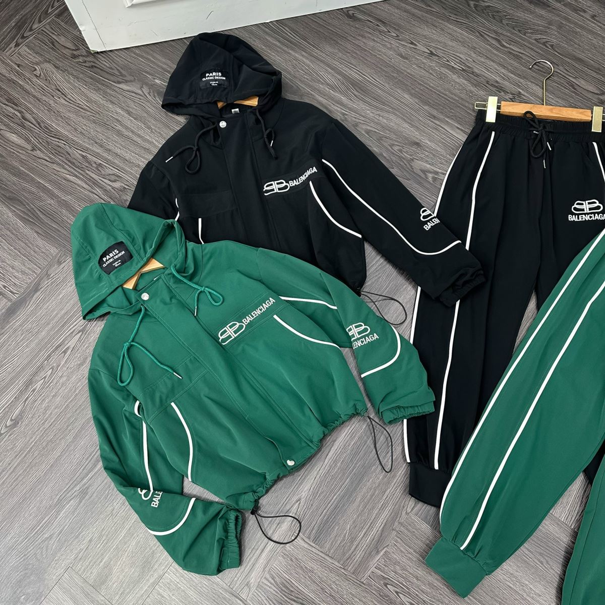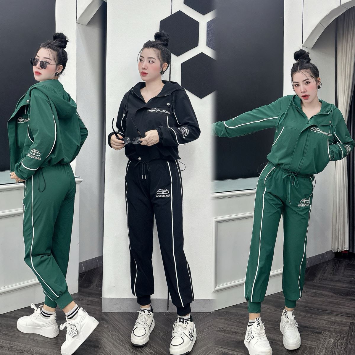 💎Tên sản phẩm: Set Bộ Đồ Nữ Áo Khoác Gió Dài Tay Phối Viền Tay Mix Quần Suông Bo Gấu Mũ Liền